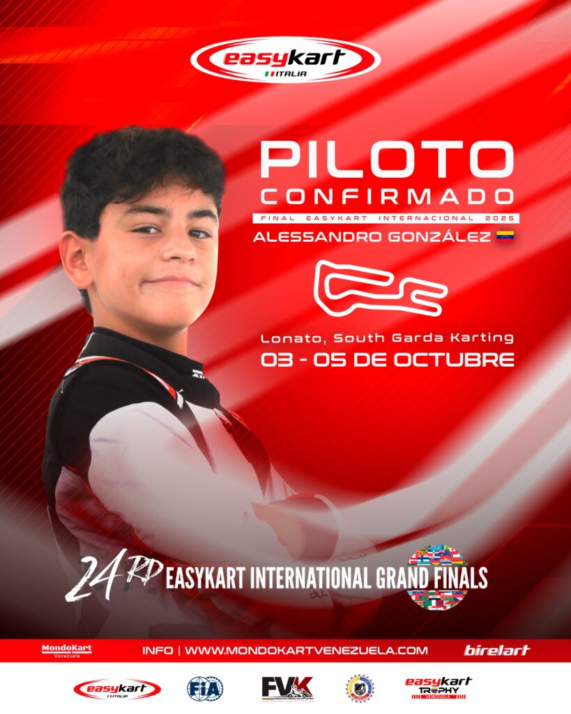 Alessandro González, joven piloto profesional de Karting, estará compitiendo en el mundial easykart 2025 el cual será llevado a cabo en Italia, pista South Garda Karting.
